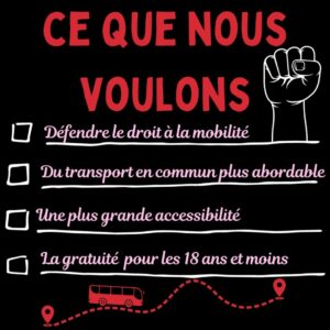 Notre prochaine revendication est claire : la gratuité du transport collectif pour toutes les personnes de moins de 18 ans.