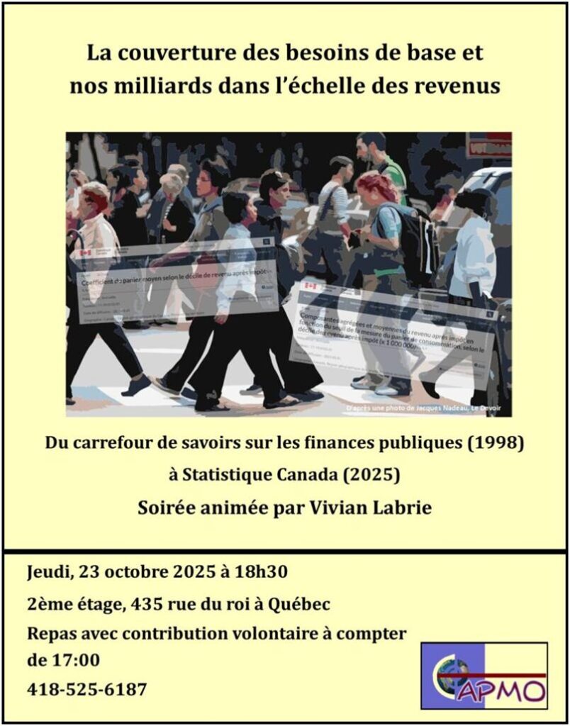 La partie nouvelle, c’est que nous allons faire une histoire sur 25 ans environ. Il faut remonter au Carrefour de savoir sur les finances publiques à l’hiver 1998. Il y a des réunions qui ont eu lieu ici au Carrefour Cardijn et qui ont influencé toutes sortes de choses qui se sont enchainées. Ce processus a conduit à la reconnaissance de la pertinence de notre méthode d’analyse et de classification des revenus par Statistique Canada qui publie pour la première fois des indicateurs très différents de ce qu’il y avait avant.