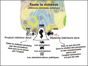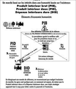 Alors, on s’est dit : « On va appeler cela le PID, le produit intérieur doux. » Et comme il ya aussi un versant dépense, quelqu’un a dit : « On devrait inventer la dépense intérieure dure. » Ce serait quoi ? Le groupe a répondu : « C’est quand on prend dans notre vitalité, dans notre santé, dans nos espoirs, dans notre espérance de vie. » « C’est lorsqu’on perd des années de vie parce qu’on n’a pas l’argent qu’il faut pour vivre. »