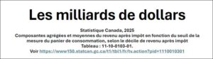 Donc le panier coûte plus cher, mais ce n’est pas là que cela joue. Ils n’ont pas de déficit, les gens ont tout le panier de réaliser et ils ont en surplus 310 milliards. Leurs revenus après impôt du dixième le plus riche des ménages au Canada est de 429 milliards.